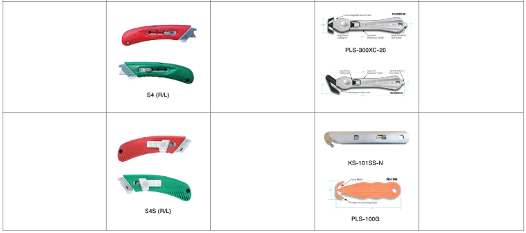 ปลอดภัยสูง จะเป็นกลุ่มที่ใบมีดจะถูกซ่อนคมไว้ด้านในของตัวด้าม จึงให้ระดับความปลอดภัยสูงแก่ผู้ใช้งาน และลดการบาดเจ็บจากการถูกใบมีดบาด ในขณะทำงานได้เป็นอย่างดี ด้ามมีดส่วนใหญ่จะมีลักษณะเป็นแบบตะขอ